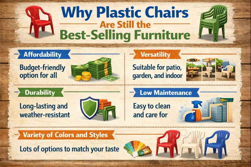 This consistent institutional demand keeps plastic chairs at the top of furniture sales charts year after year.